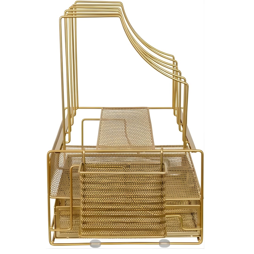 The sophisticated gold finish adds a modern, upscale touch that complements a wide range of kitchen décor styles — from contemporary to minimalist. Easy to clean and simple to maintain, this rack is as practical as it is beautiful.